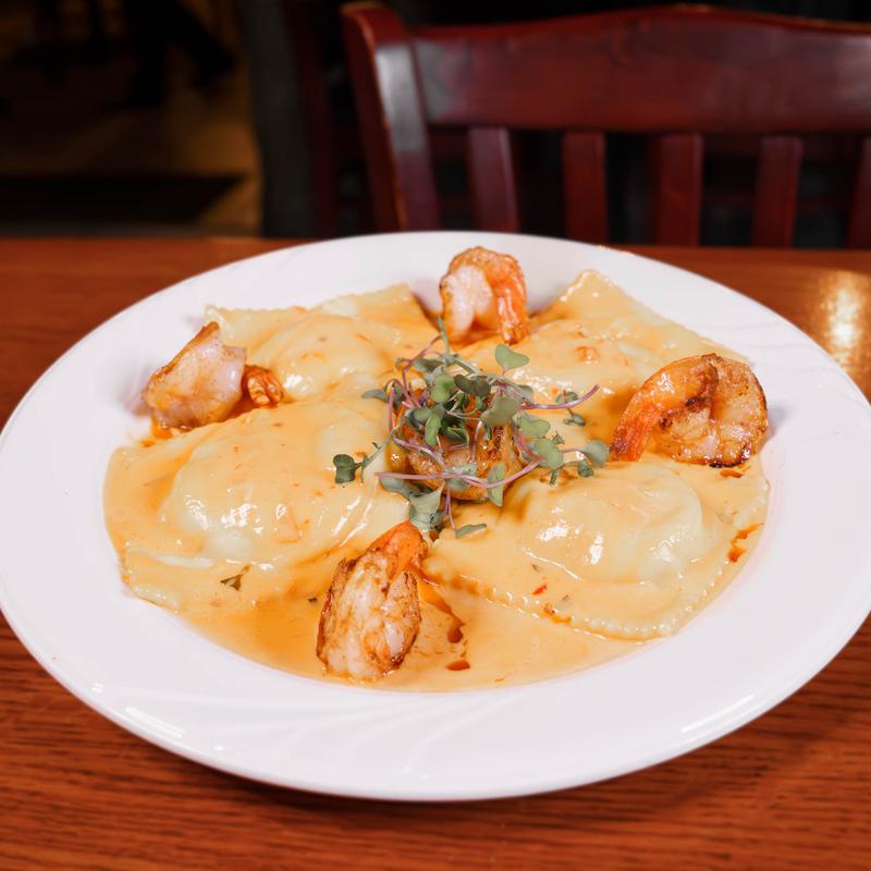 Fresh homemade ravioli filled with fresh chunks of tender lobster meat and ricotta cheese in a creamy vodka sauce