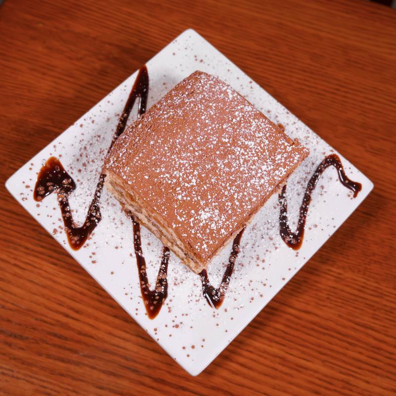 Tiramisu quite literally means, “a pick me up.” Ladyfingers drenched in fresh espresso, layered with rich Mascarpone cheese and dusted with cocoa